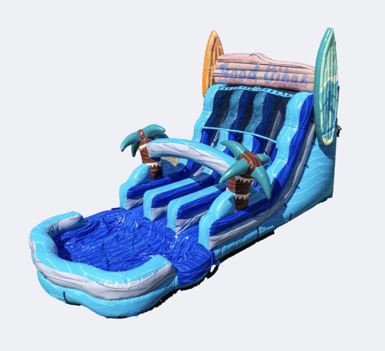 Double the lanes, double the fun! Our 17FT Good Vibes Dual Lane Slide is the ultimate way to bring energy, excitement, and unforgettable memories to your next event. With its bright, colorful design and uplifting "Good Vibes" theme, this slide is a hit with kids, teens, and even adults looking for a thrill.